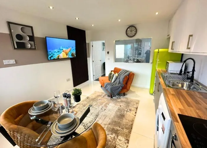 O Stylish 1 Bed Apartment 5, Free Parking 5 Mins To Citycentre está equipado com comodidades auto-suficientes, como máquina de café/chá, refrigerador e forno, dando aos hóspedes a independência para preparar as suas próprias refeições. O aeroporto em Birmingham pode ser acedido em 31 minutos de carro.